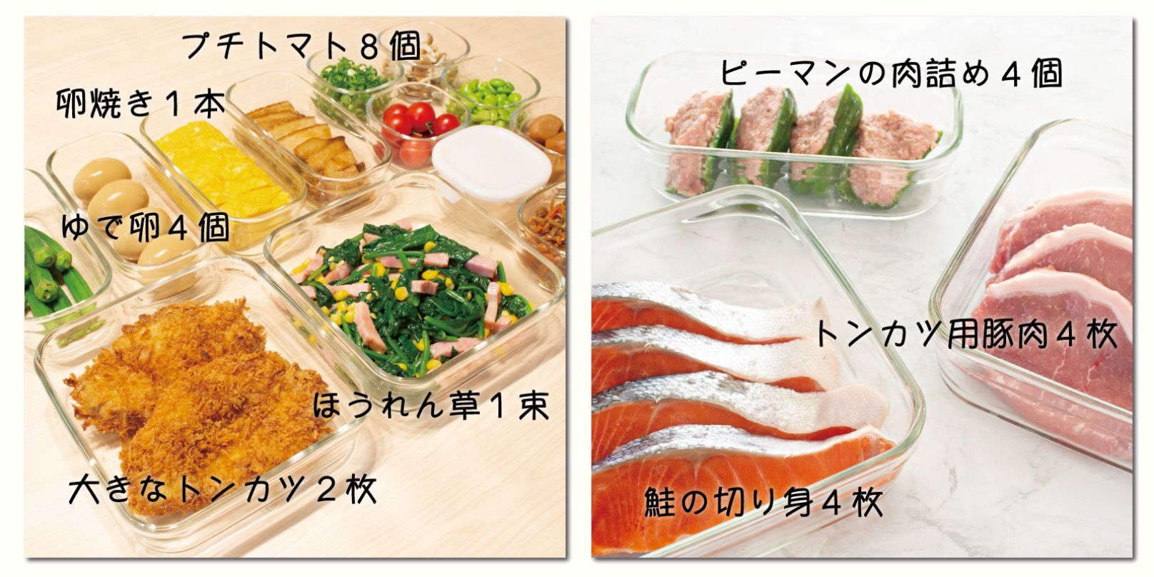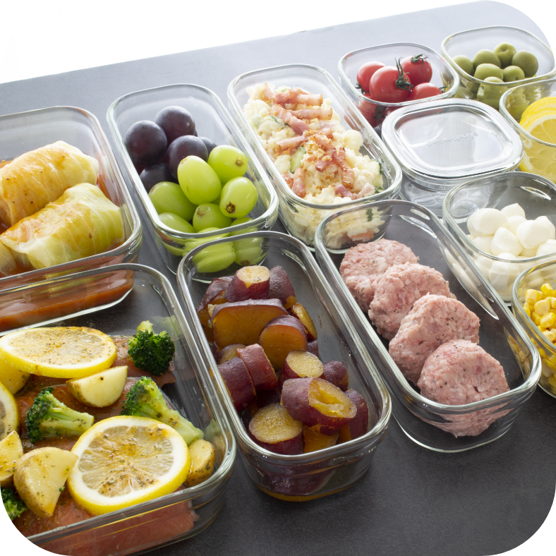 白と透明の保存容器なので冷蔵庫の中も食器棚の中もスッキリと収納できます!主役の料理の、色も映えます。