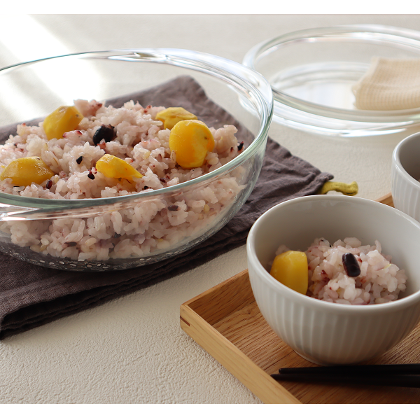 電子レンジ・オーブンで使える耐熱ガラス製。下ごしらえ等、ボウルとしても役立つ便利なアイテムです。電子レンジを活用すれば、蒸し料理や一人分の鍋料理煮込みうどんなども作れて、炊飯も可能。「簡単なのにお料理上手に見られます♪」