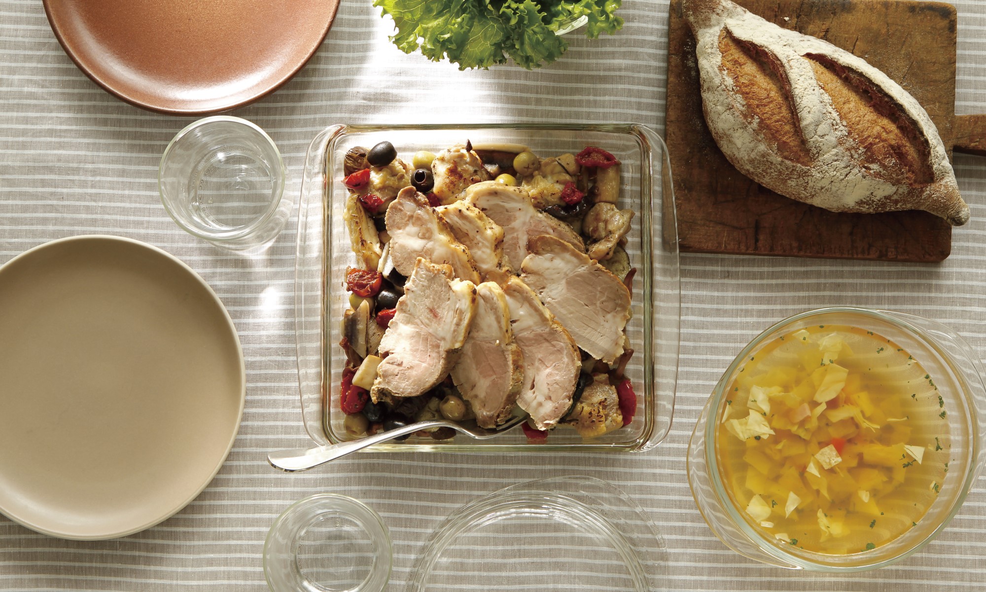 そのまま食卓にクリアなガラスなので、オーブンで焼いた料理やケーキをそのままテーブルウェアとしてもとっても華やかです。