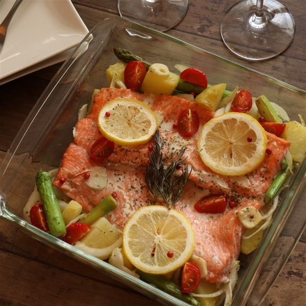 - 鶏と野菜のオーブン焼きケーキ焼き皿で作れるのはケーキだけじゃありません!