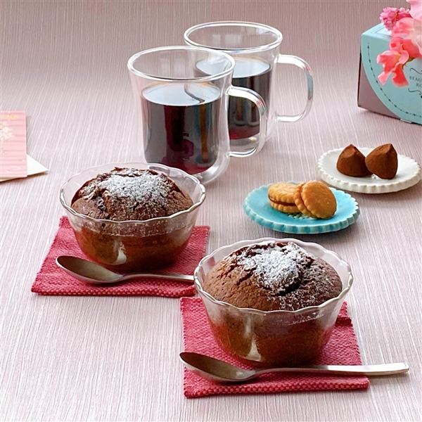 焼き具合も一目でわかりますオーブンで使用する際はガラス製カップなので、中の焼き具合も一目でわかりとても便利です。