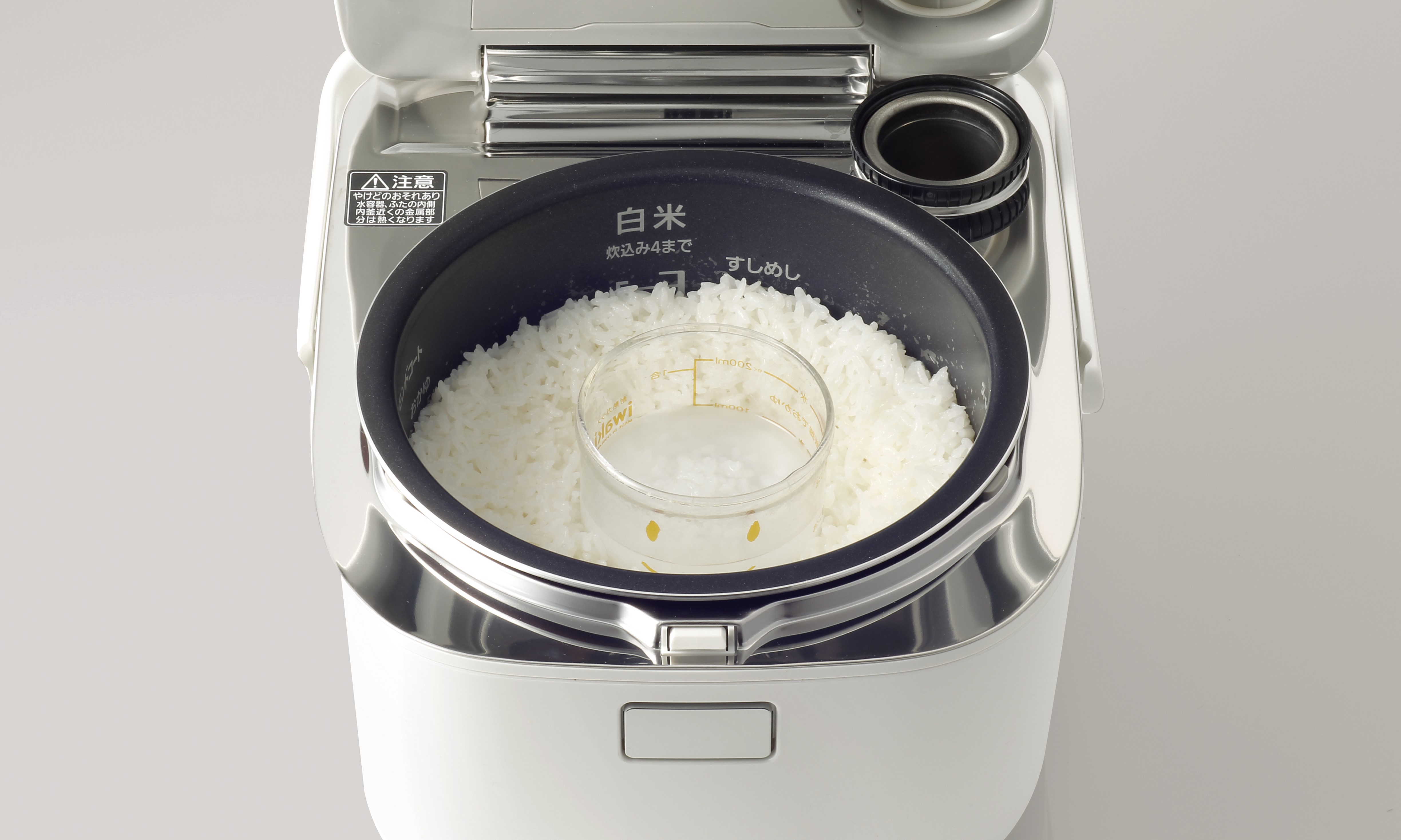 炊飯器でごはんと一緒におかゆが炊けます。お子様の離乳食や体調の弱い時の食事作りに便利にお使いいただけます。