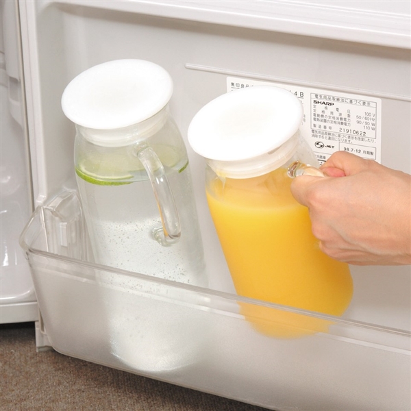 冷蔵庫にもスッキリ収まります。把手付きなので冷蔵庫の出し入れしやすいです。