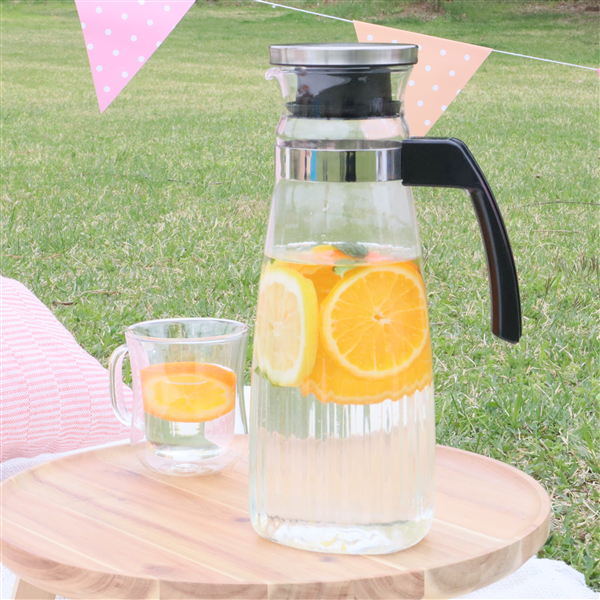 | 素材 | 本体/耐熱ガラス ハンドル/ABS樹脂(耐熱温度:80℃) バンド/ステンレス フタ/ステンレス・ポリプロピレン(耐熱温度:120℃) パッキン/シリコーンゴム(耐熱温度:200℃)  |