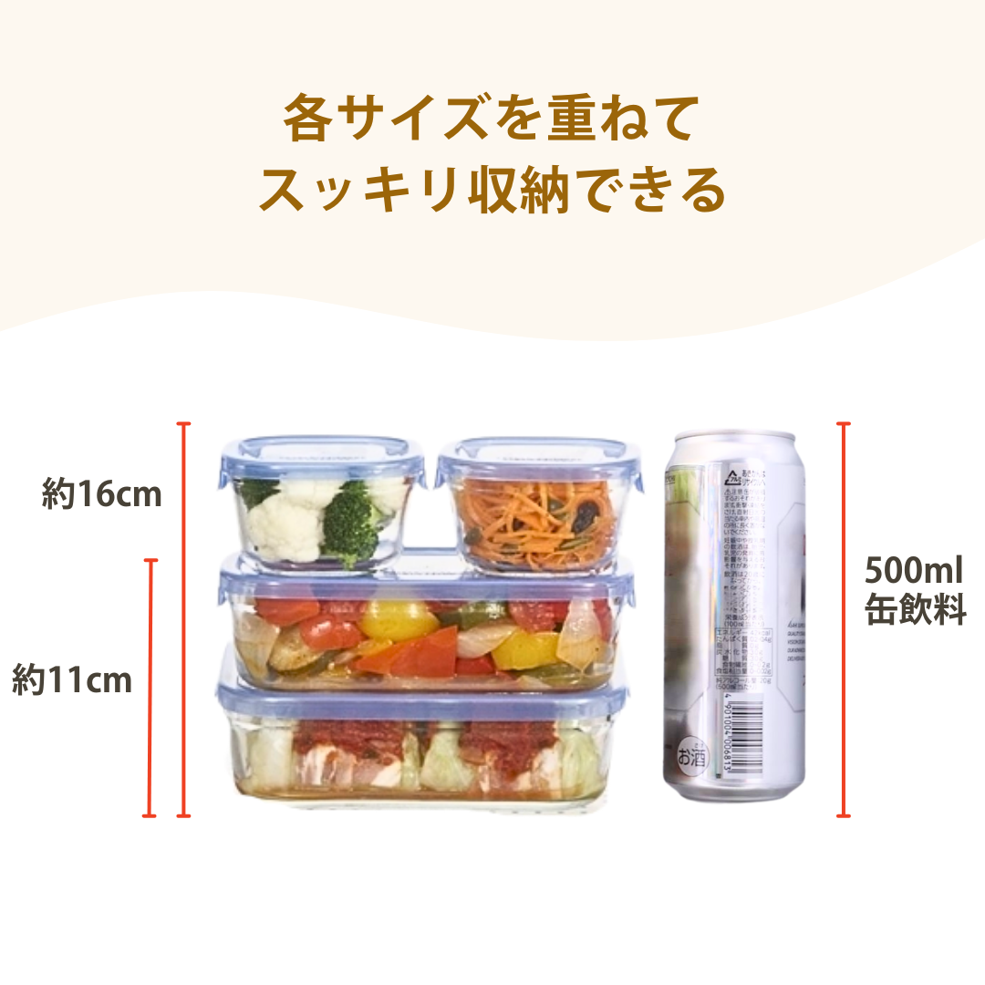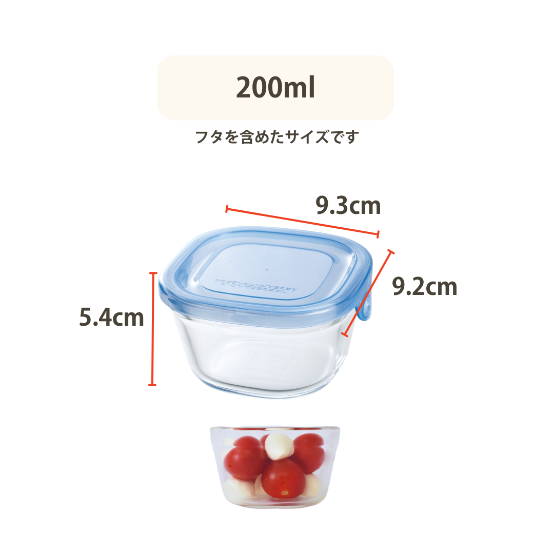200ml/W9.3×D9.2×H5.4cm ×4個 500ml/W18.6×D9.3×H5.5cm ×2個 1.2L/W18.5×D18.5×H5.5cm ×1個  |