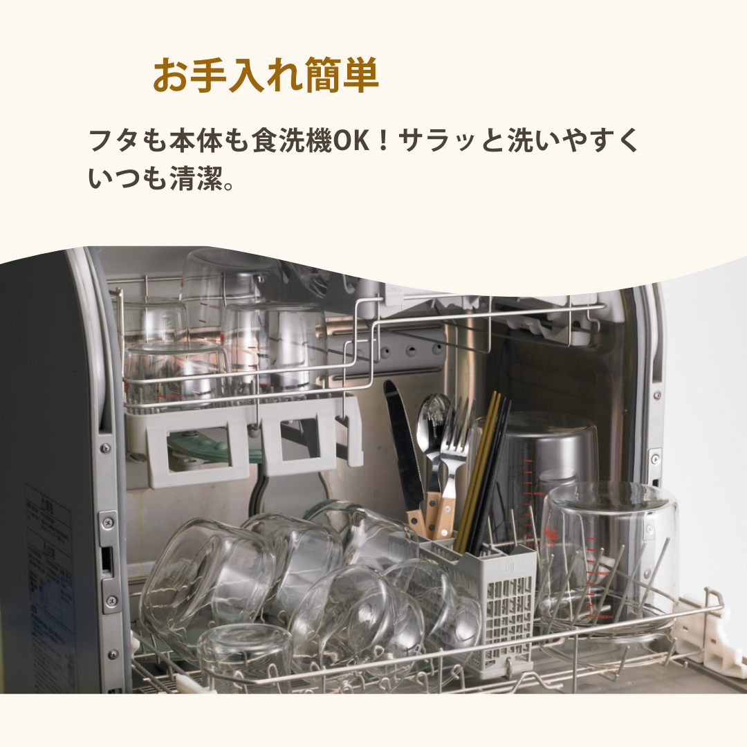 | 素材 | 本体/耐熱ガラス フタ/ポリプロピレン(耐熱温度:140℃)  |