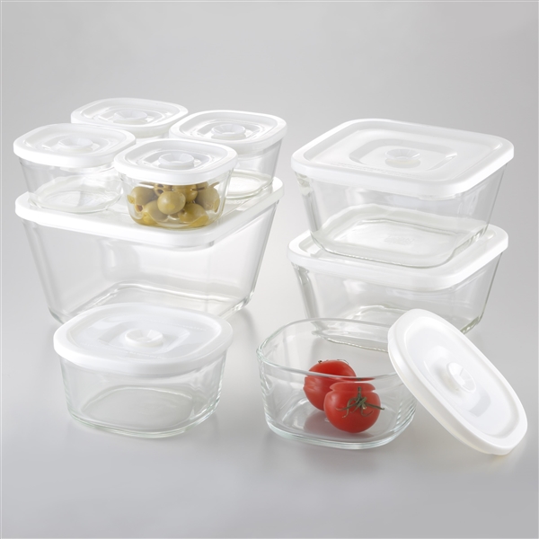 | セット内容 | 110ml/W9×D9×H5.5cm ×4個 350ml/W13×D13×H6.5cm ×2個 700ml/W15.5×D15.5×H8cm ×2個 1.5L/W18.5×D18.5×H11cm ×1個  |