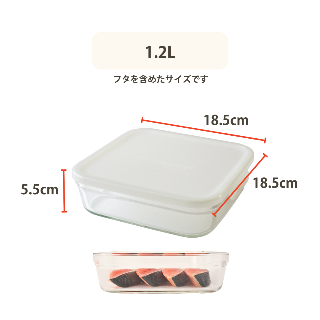 200ml/W9.3×D9.2×H5.4cm ×4個 500ml/W18.6×D9.3×H5.5cm ×2個 1.2L/W18.5×D18.5×H5.5cm ×1個  |