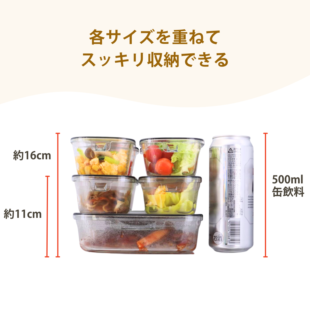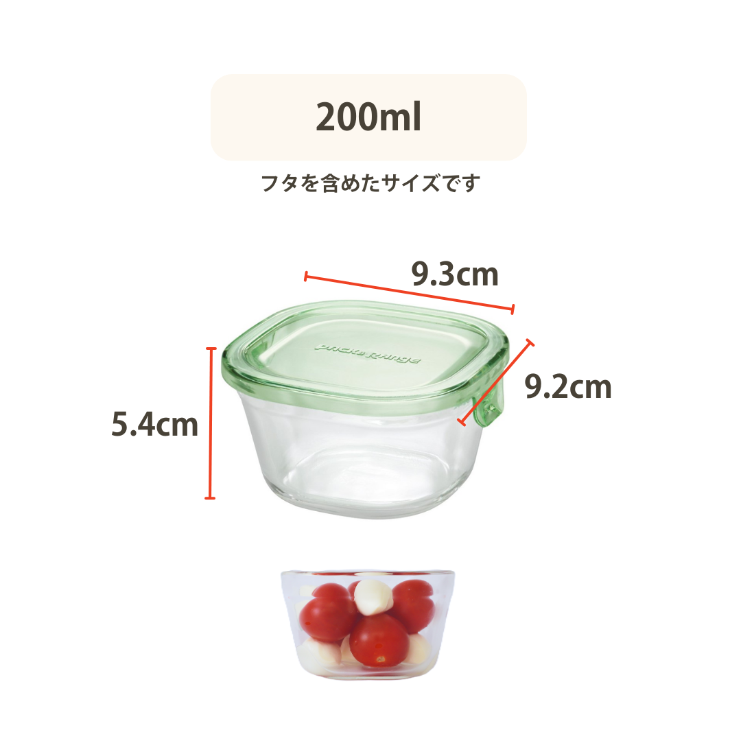 200ml/W9.3×D9.2×H5.4cm ×4個 500ml/W18.6×D9.3×H5.5cm ×2個 1.2L/W18.5×D18.5×H5.5cm ×1個  |