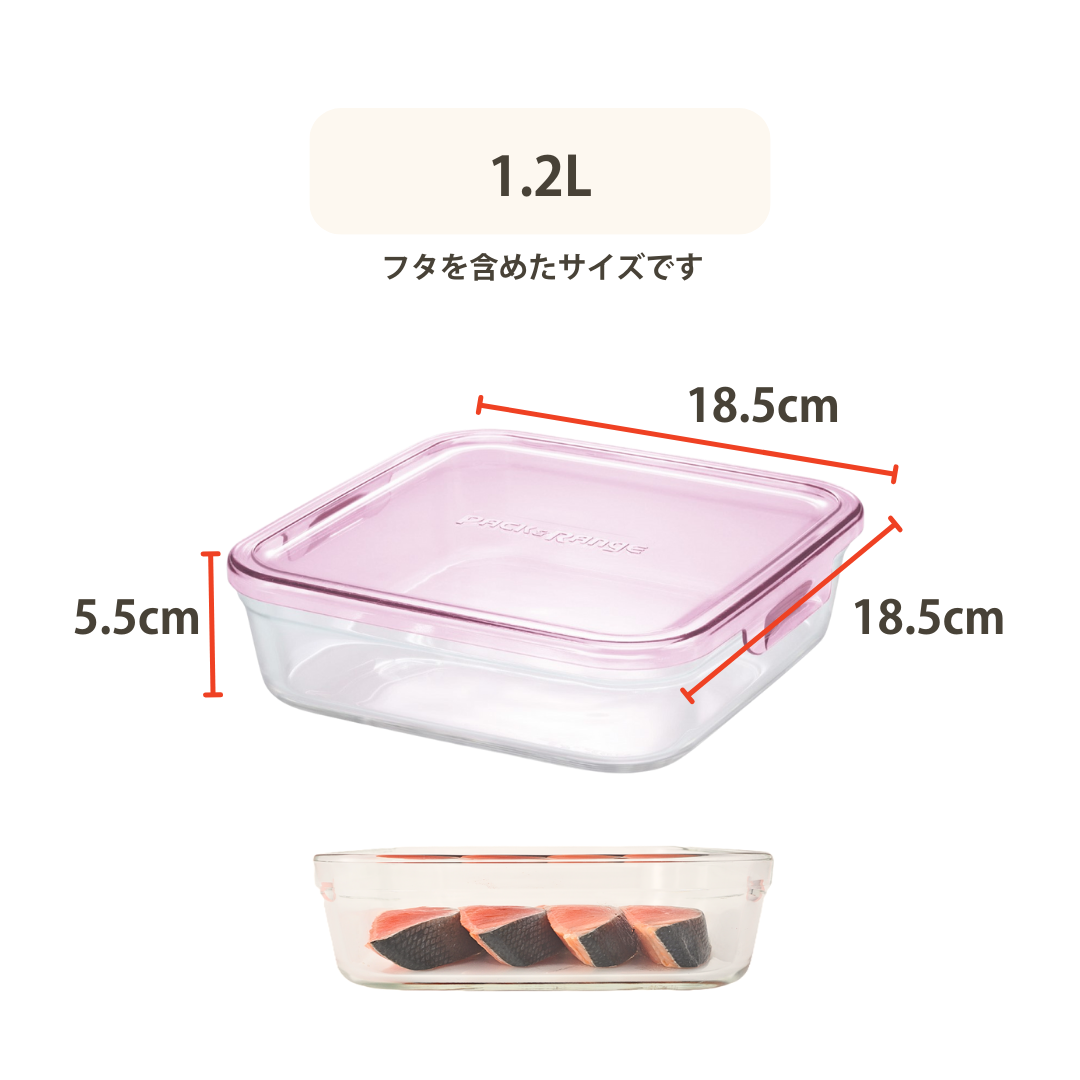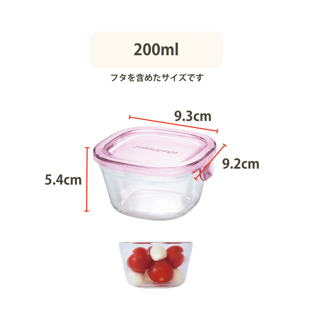 200ml/W9.3×D9.2×H5.4cm ×4個 500ml/W18.6×D9.3×H5.5cm ×2個 1.2L/W18.5×D18.5×H5.5cm ×1個  |