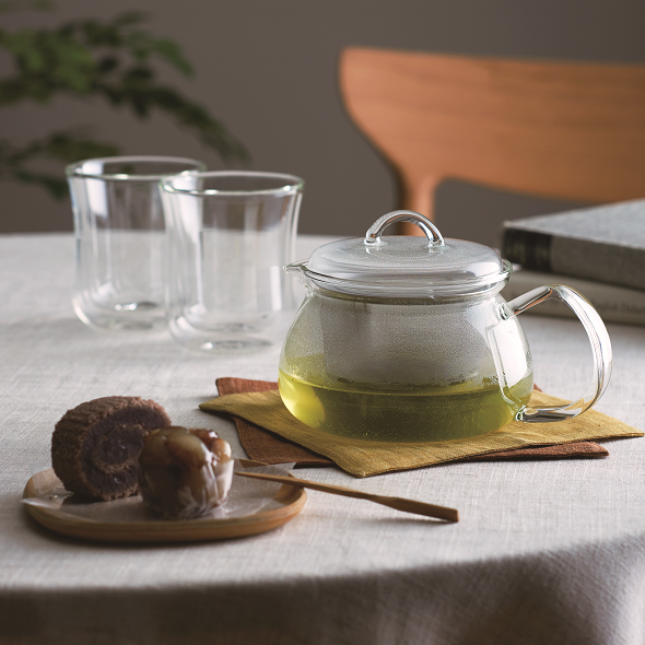 クリアなガラス製だから、日本茶だけでなく様々な茶葉の香りや味わい、見た目までも楽しめます。