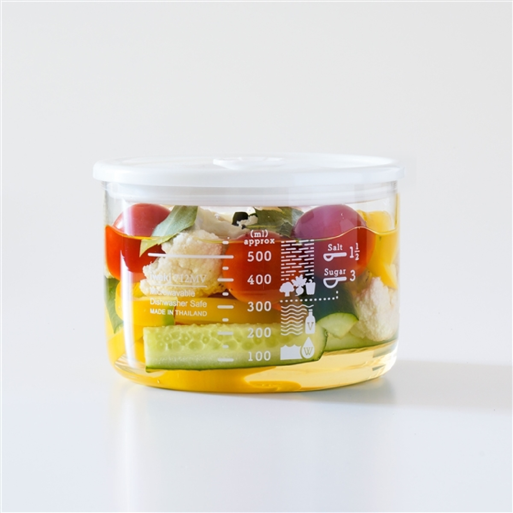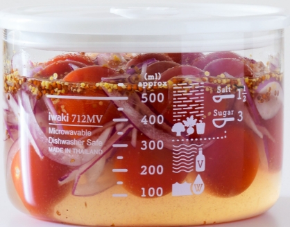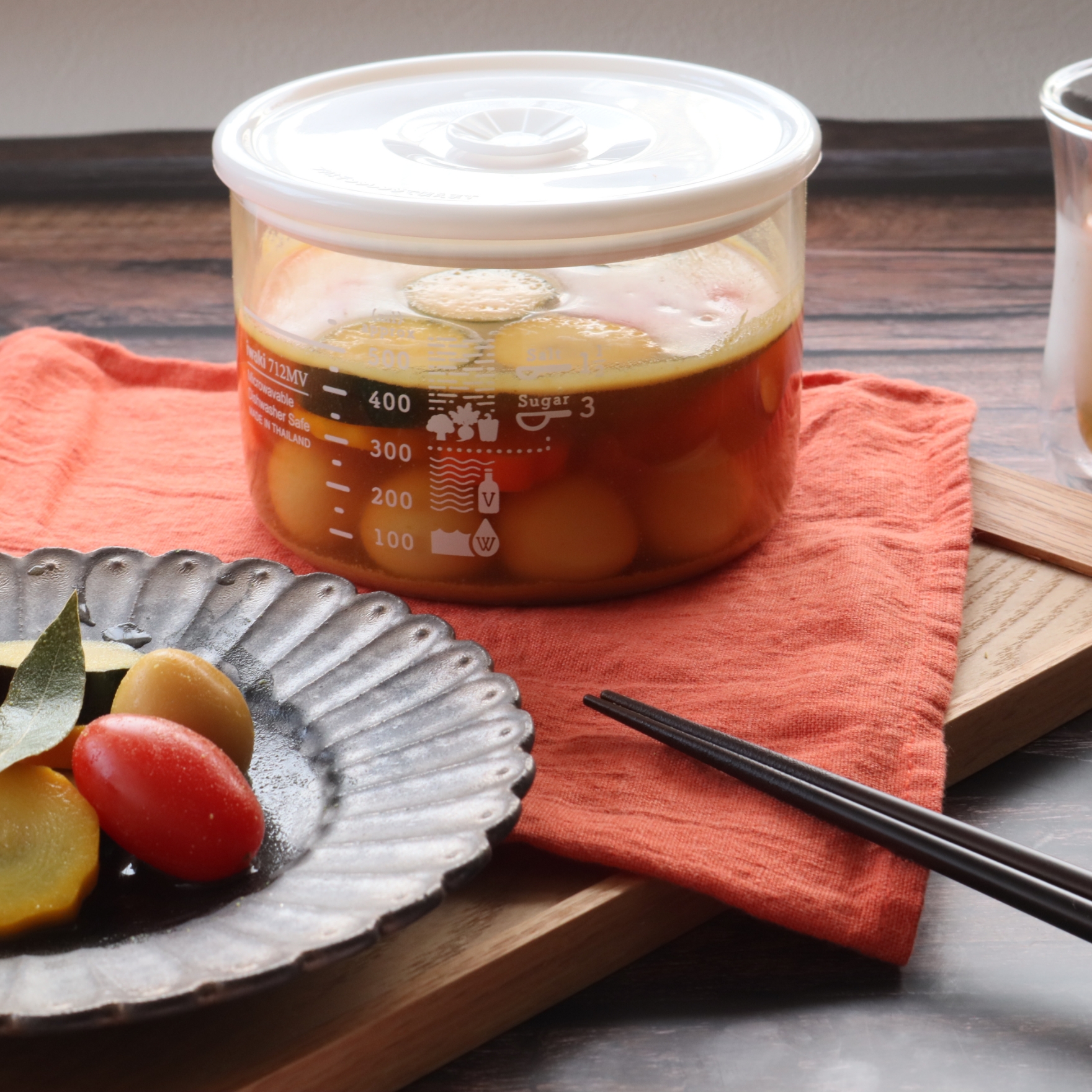 容器の目盛りを目安に、お好みの野菜手軽にピクルス作りができます。