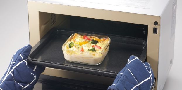 オーブン使用の際はフタを外してください。「パック&レンジでドリアをよく作ります。我が家のオーブンでは、パック&レンジが2個ちょうど並びます」