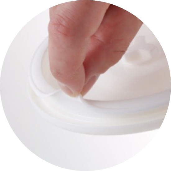 中央のバルブを押すと簡単密閉!開けるときはバルブを引くと開けられます。