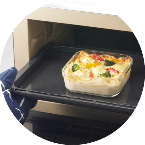 角型容器は、オーブンでお菓子作りやグラタン、おもてなし料理にも活躍します。