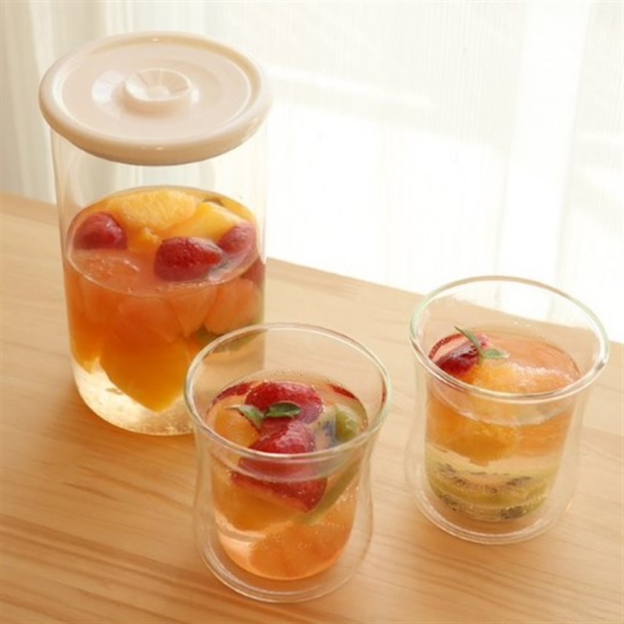 耐熱ガラスは酸や塩に強いガラスなので問題ありません。但し一部の製品のプラスチックのフタは、みかんやレモンなどの柑橘類に含まれる成分によって変形する場合がありますので、柑橘類を入れる際は、取扱説明書をご確認ください。