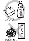 注意 :洗浄する場合は、やわらかいスポンジに台所用洗剤をお使いください。研磨剤入りナイロンたわし、金属たわしや粒子の粗いクレンザー等を使用しますとガラス食器が傷つき、破損する原因となりますので使用しないでください。