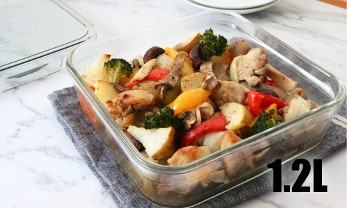 正方形のこのサイズは、ご飯やカレーなど、一人前を保存するのに最適。冷凍保存にも!間口が広いので、シャモジやおたまがラクに入ります。透明なので、色鮮やかな果物を保存するととても綺麗です。→レシピはこちら(トースターを使ったマリネ)
