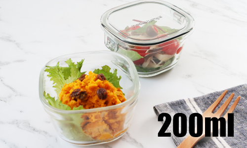 お弁当や夕飯の「つくりおき」に大変便利なサイズ。冷蔵庫の中では、この商品の上に、200mlサイズがふたつ重なります。少し細長いものの保存にも。フタを外せばオーブンに使えるので、この長方形でパウンドケーキが作れます。→レシピはこちら(ミートローフ)