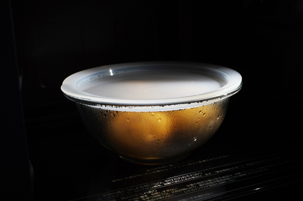 フタ(ラップ)はせずに、600wのレンジで2分加熱する。