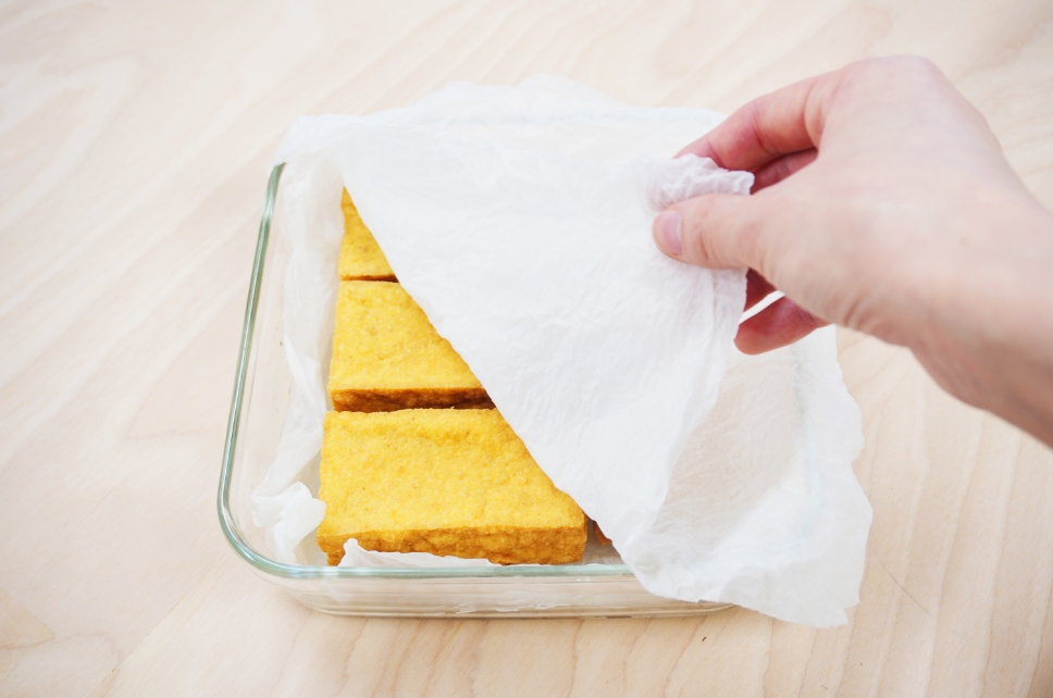 キッチンペーパーで表面についている余分な油をふき取る。