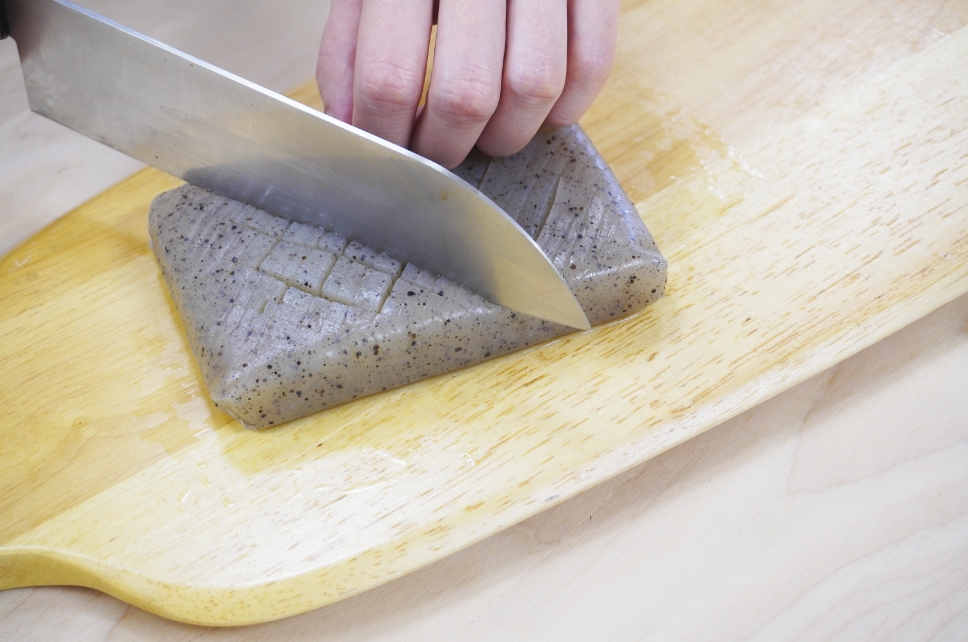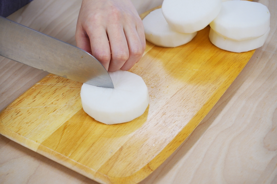 面取りをして、十字に切れ目を入れる。
