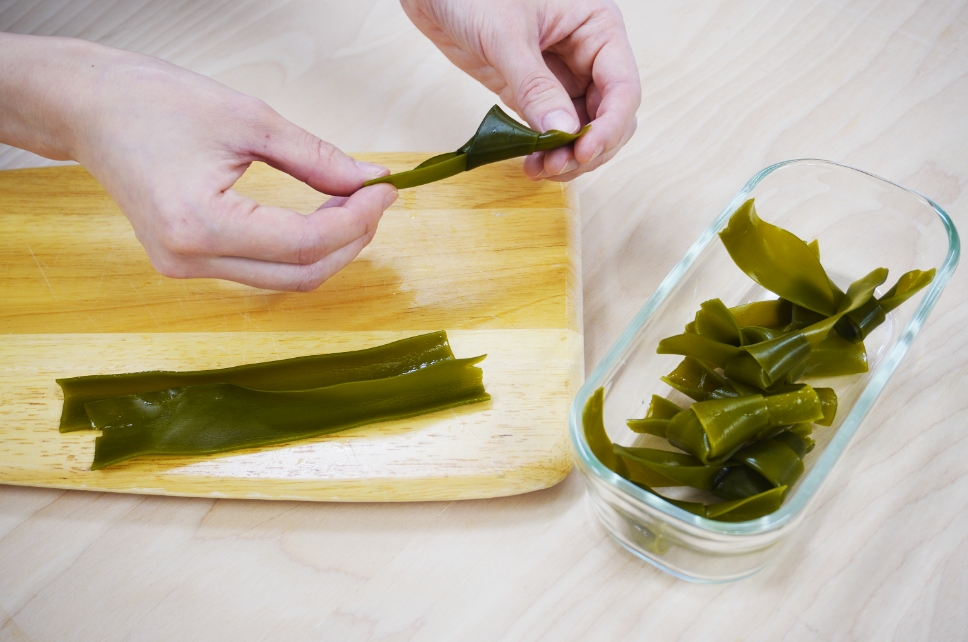 乾燥昆布を水につけておくだけで、簡単に昆布水が作れます。