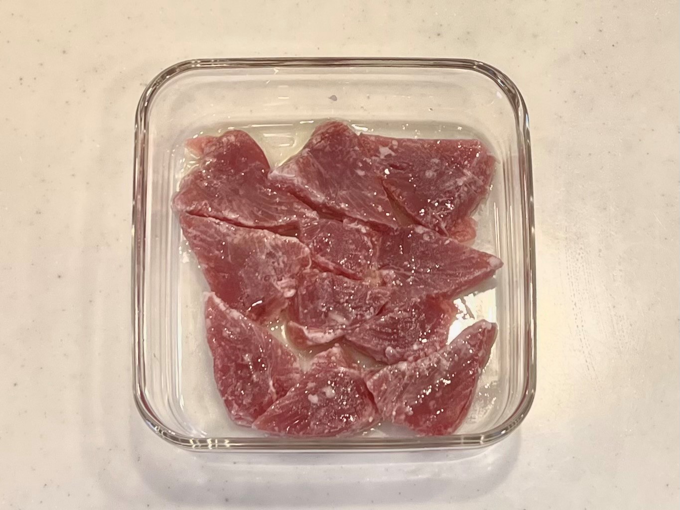 カツをを取り出し、サッと水洗いをし、水分をとる
